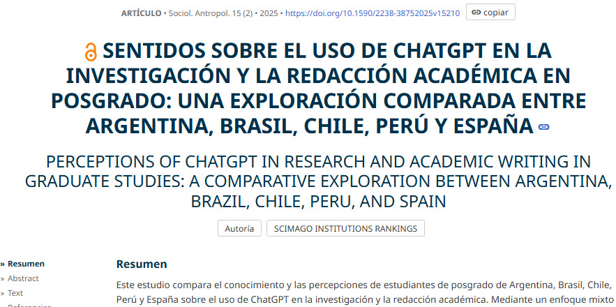 SENTIDOS SOBRE EL USO DE CHATGPT EN LA INVESTIGACIÓN Y LA REDACCIÓN ACADÉMICA EN POSGRADO: UNA EXPLORACIÓN COMPARADA ENTRE ARGENTINA, BRASIL, CHILE, PERÚ Y ESPAÑA
